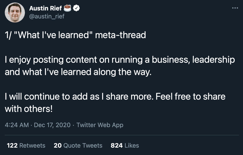 2/🦄 Who's doing it rightHere are a few people building their audience using Twitter threads:@JoePompliano - little known facts about very well known people (sports)@ryangum - insights into his business Teachable@austin_rief - learnings from building Morning Brew